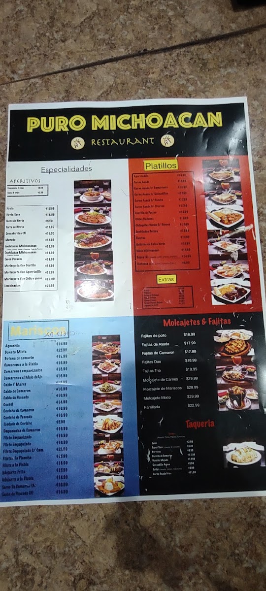 Camaron Tilapia Ostion Conchitas Queso Fresco Cebolla Asada Callo de Hacha (scallop) Jalapeno
